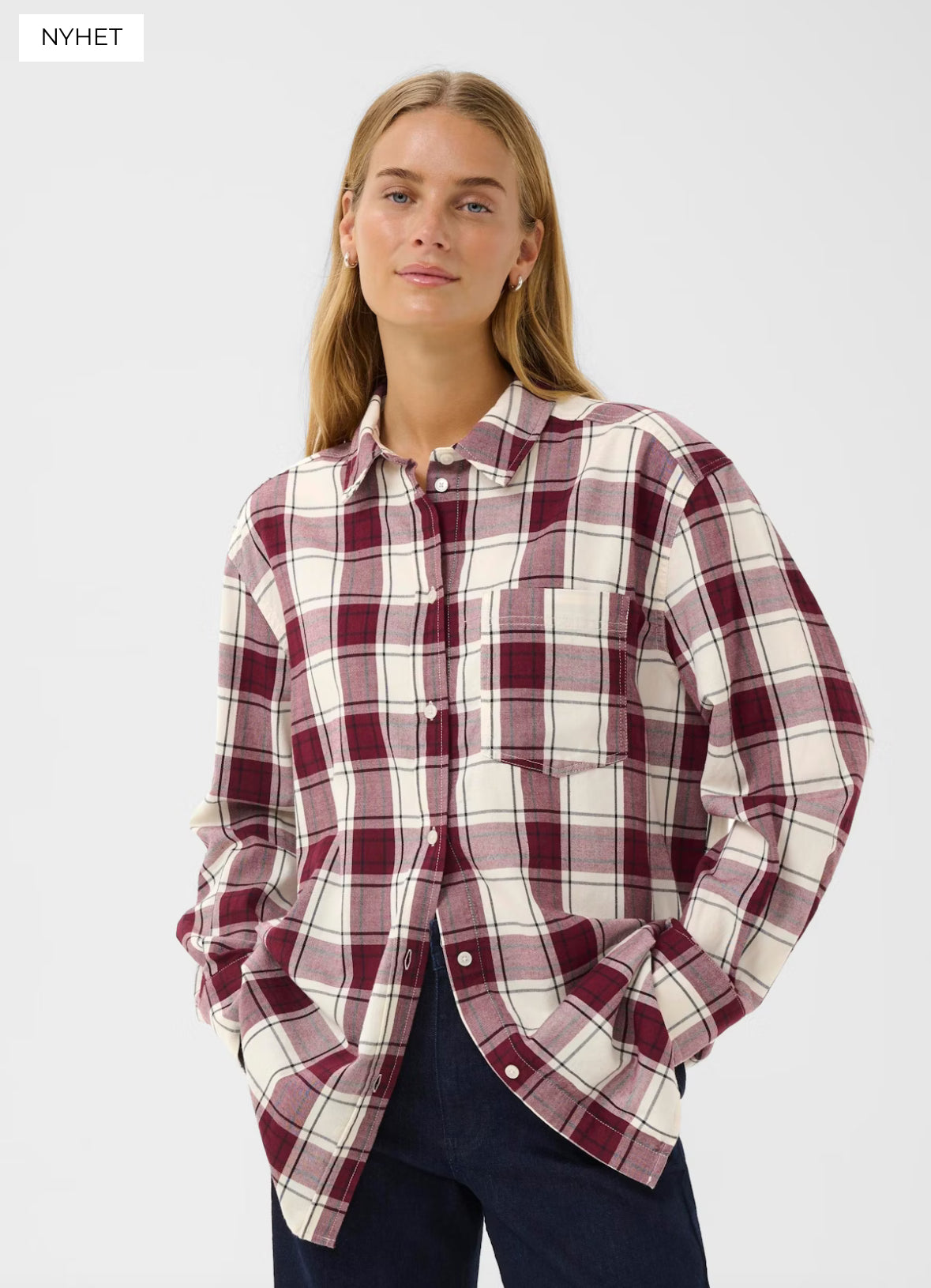 God og myk oversize skjorte fra Part Two. Tynn myk flanell kvalitet. Stor på str , vi anbefaler en str ned. 50% bomull 50% lyocell