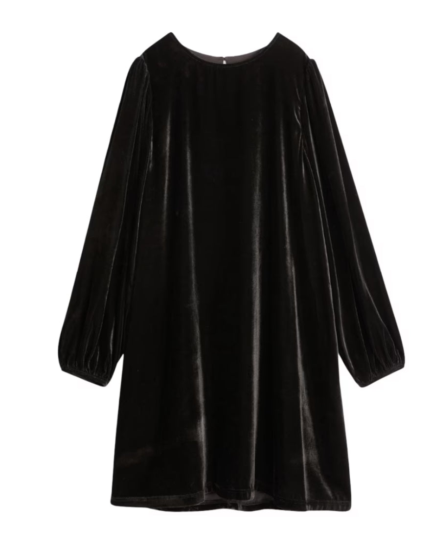 Line of Oslo-kjole med en lett A-linje silhuett i nervøs fløyel, fullført med puffermer og en rund halslinning. Kjolen er helforet og lukkes med en liten knapp i nakken for et pent hverdagsutseende. Viktige egenskaper: brun | Viskose | Helforet | Knappelukking i nakken | Elastiske mansjetter | Rund halslinning | Puffermer | Lett A-linje silhuett | Lange ermer | Mål og passform: Lett A-linje passform | Sammensetning og vedlikehold: 80% viskose | 20% polyester | Fôr: 95% polyester, 5% elastan | Maskinvask 30°C, ullprogram.