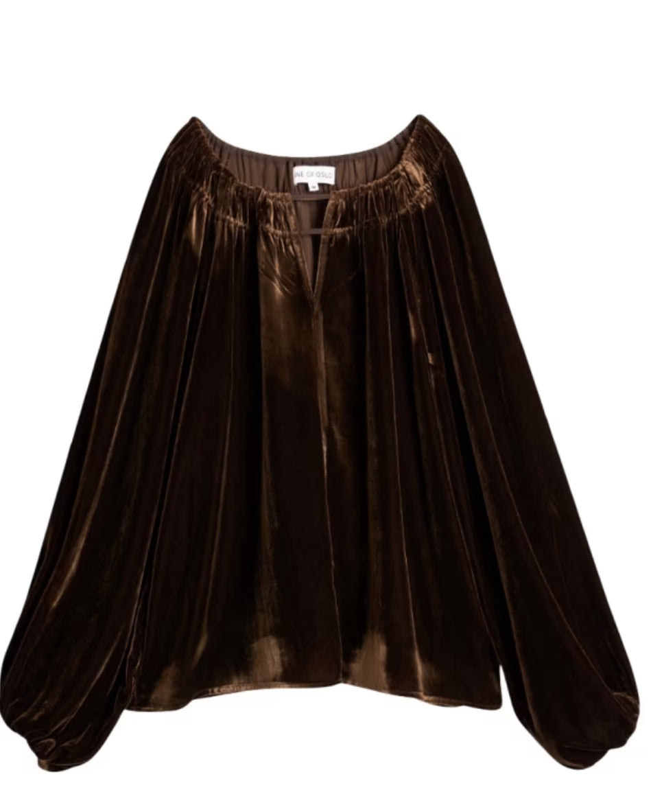 Line of Oslos Tessa Velvet Bluse kombinerer delikate detaljer med en avslappet silhuett, med en rund halslinje med en subtil V-splitt og knytefeste. Den er ideell for hverdagsstyling – bruk den med jeans for en uanstrengt look. Viktige egenskaper: Brun | Brun | Viskose | Knyting i halsen | Elastiske mansjetter for sikker ermeavslutning | Rund halslinje med subtil V-splitt | Vide ermer | Rynkede elastiske mansjetter | Delikate knytebånd i halsen | Dimensjoner og passform: Avslappet passform | Sammensetning og vedlikehold: 80 % viskose | 20 % polyamid | Maskinvask 30°C (ullprogram).