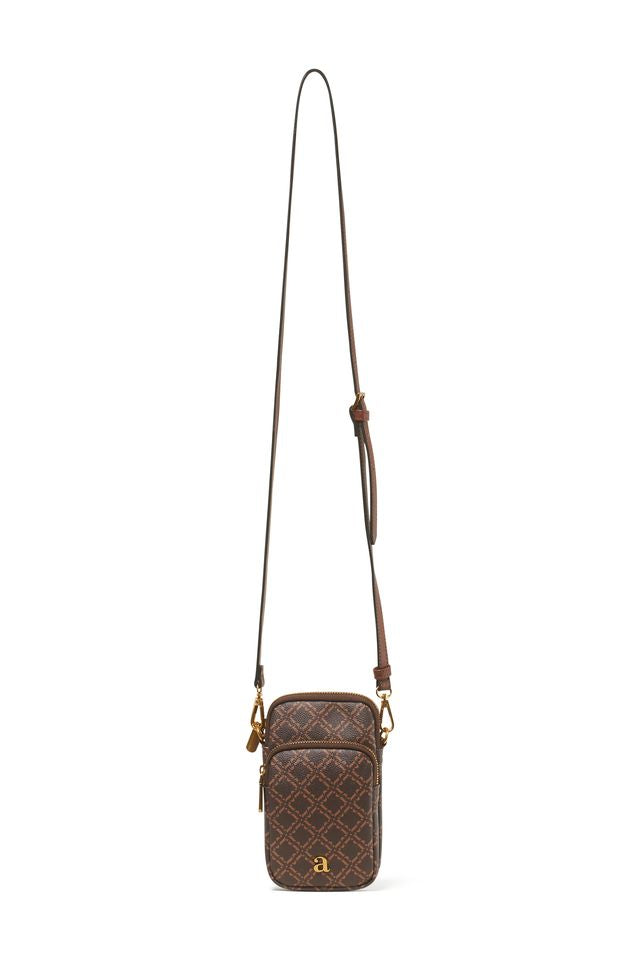 Elegant og funksjonell – denne telefonvesken kombinerer klassisk design med praktiske detaljer. Den har et helprintet monogram som gir et eksklusivt uttrykk, og detaljer i gyllent metall som løfter helheten. Vesken har to separate glidelåslommer, justerbar skulderrem og plass til både telefon, kort og små eiendeler. Et stilsikkert tilbehør som passer like godt til hverdagsbruk som til reiser. 10x17x4cm