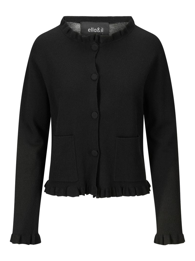 En sjarmerende kort cardigan med rett passform og elegante detaljer. Designet med rund hals og rette ermer, har den delikate rysjer ved mansjettene, halsen og kanten for et feminint preg. Forsiden lukkes med stoffkledde knapper, noe som gir en raffinert finish til dette merinoull-klassikeren. Perfekt for lag-på-lag eller bruk alene.