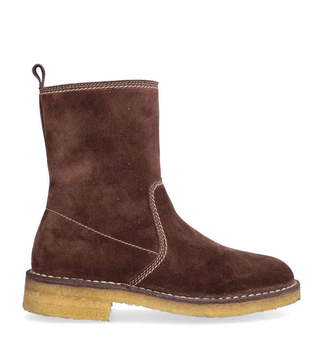 Håndlaget støvel fra Billi Bi, laget av brun semsket skinn med rund tå. Denne støvelen er fôret med ull og har glidelås på innsiden, noe som gjør den enkel å ta av og på. Støvelen har også en rå gummisåle – som gir den mest komfortable komforten.
