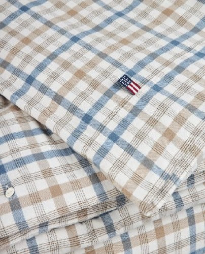 Rutet sengesett i bomullsflanell, dempet blå/hvit