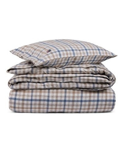 Rutet sengesett i bomullsflanell, dempet blå/hvit