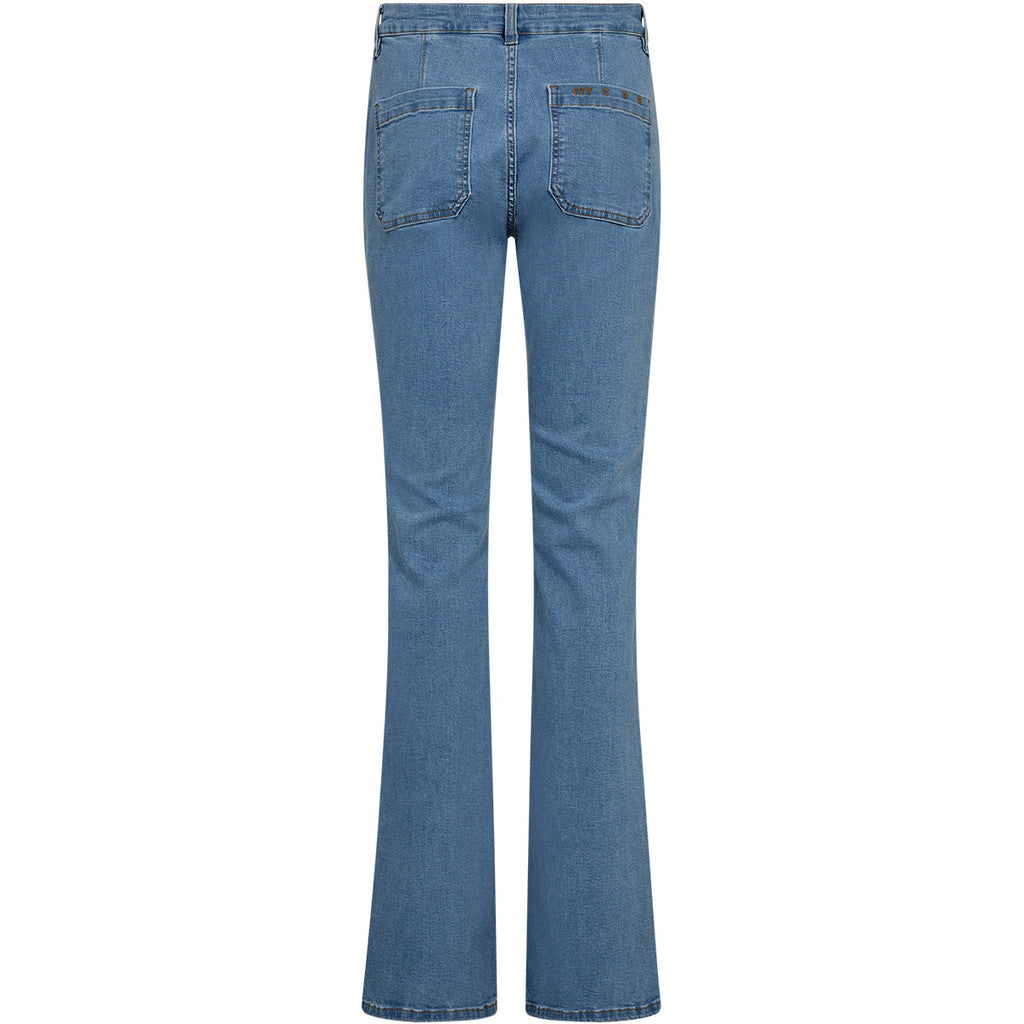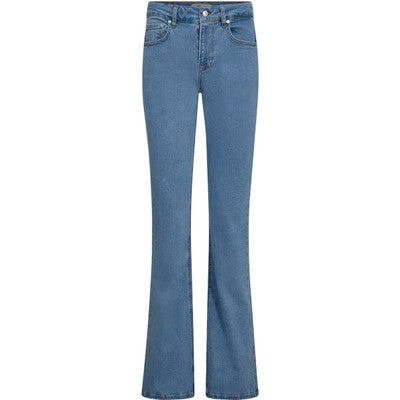 En perfekt vask , medium høyde på livet. Flare fra kneet og ned. Full lengde på bena.