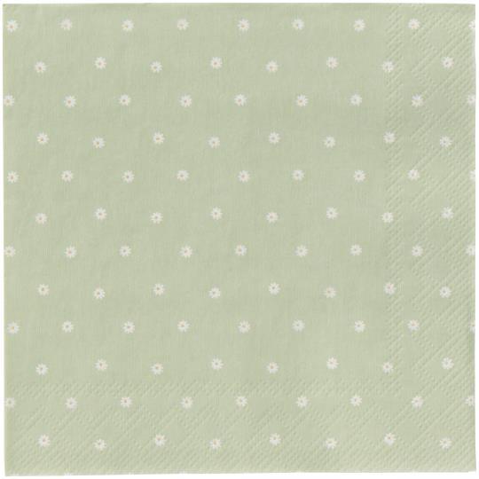 Kaffeserviet 12,5x12,5 cm Daisies lysegrøn m/små margueritter